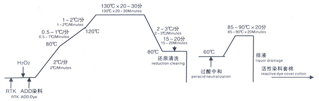 3、推介的滌/棉染色工藝:適合于對(duì)雙氧水較敏感的分散染料染色