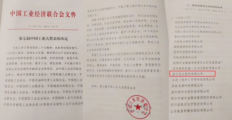 第七屆中國(guó)工業(yè)大獎(jiǎng)發(fā)布 閏土股份榮獲中國(guó)工業(yè)大獎(jiǎng)提名獎(jiǎng)