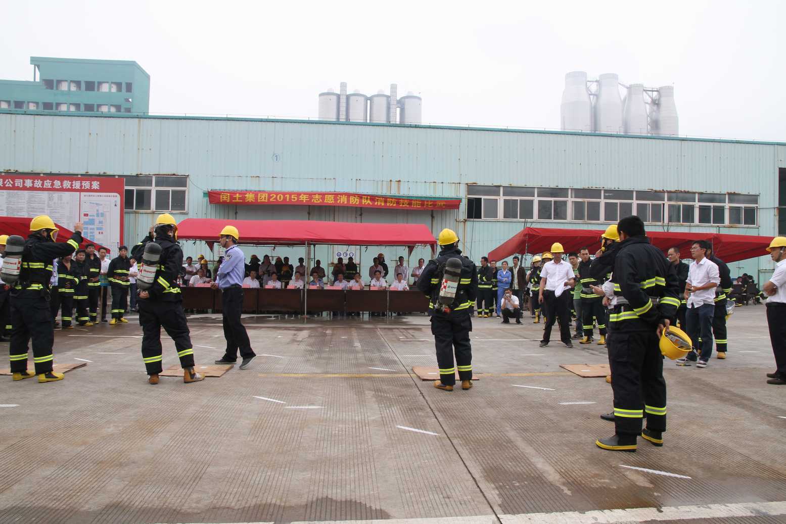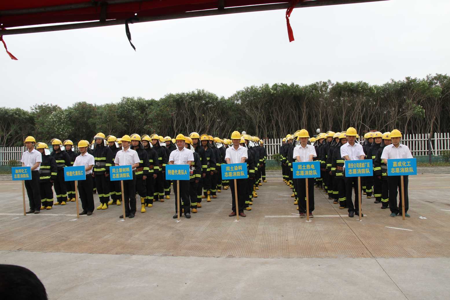 為迎接國家第十四個“安全生產月”,切實做好集團公司安全生產工作,不斷提高公司各志愿消防隊隊員處置突發事件的應急救援能力和自防自救能力,5月20日上午,閏土集團(股份)志愿消防隊消防技能比武大賽在閏土生態工業園內順利舉行。股份公司總經理徐萬福、副總經理阮光棟、總經理助理傅沛琪、各子公司董事長、總經理等出席參加。