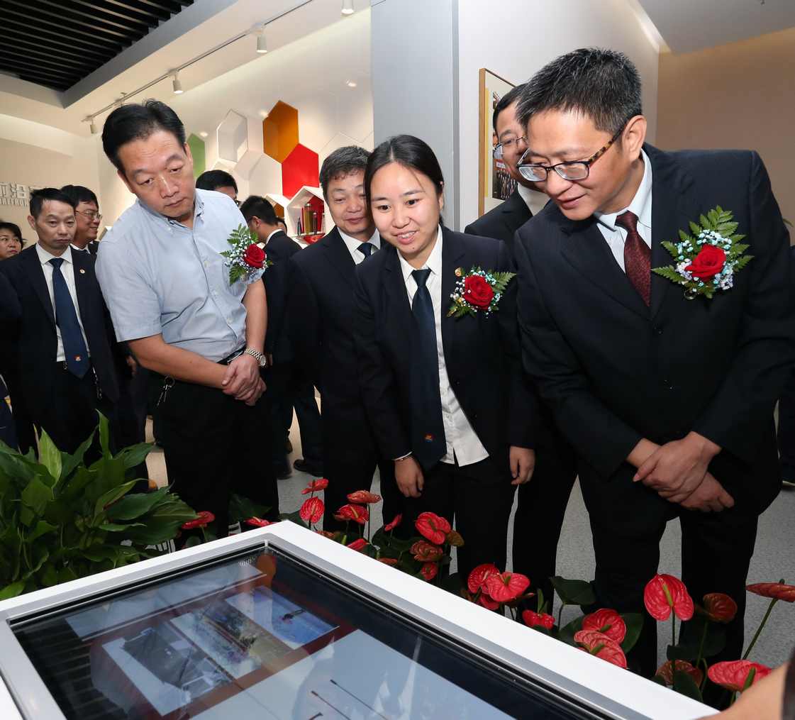 胡文煒主任,阮靜波董事長等領(lǐng)導(dǎo)展覽館內(nèi)參觀